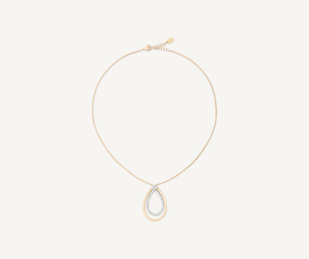 Sophisticated and linear in design, this necklace in 18K yellow gold comes with an adjustable chain and features a flat-coil drop pendant, embellished with brilliant-cut diamonds. Versatile and stylish, it is the perfect choice for everyday wear.