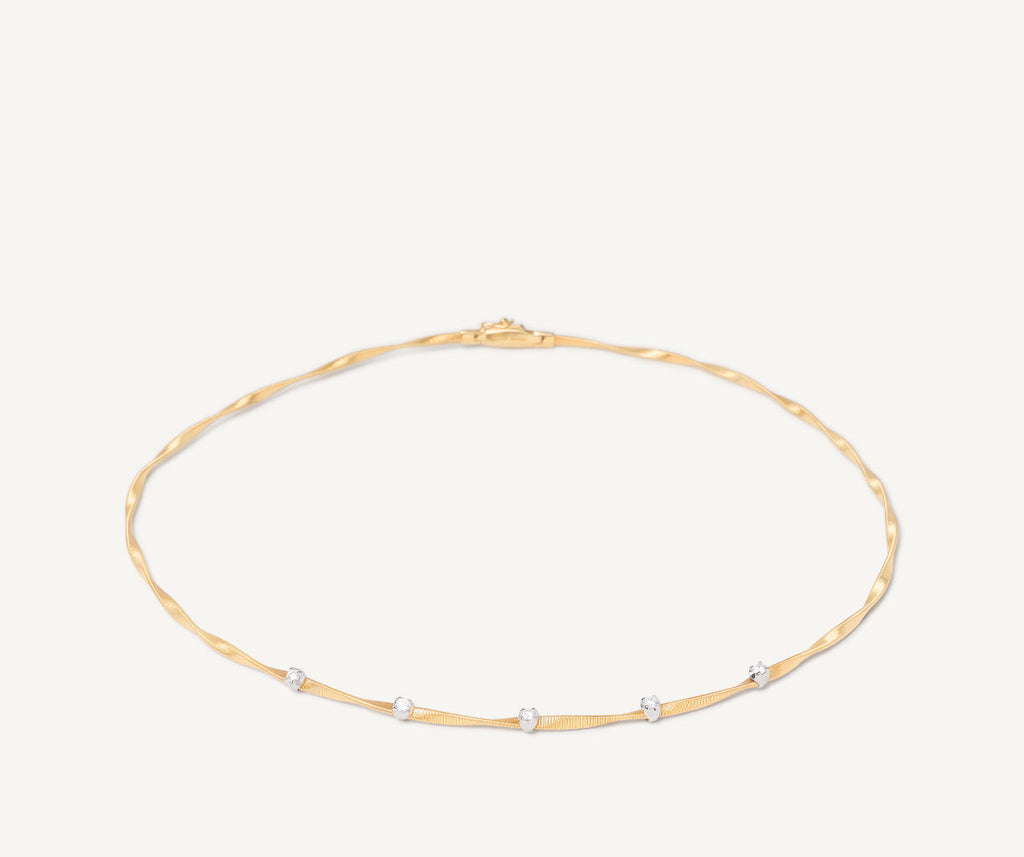 Eine elegante, gedrehte Spirale aus Gelbgold mit 18 Karat, die mit der exklusiven handwerklichen Coil-Technik gefertigt und mit fünf Diamanten in Brillantschliff geschmückt ist. Eine einzigartige Stilerklärung.