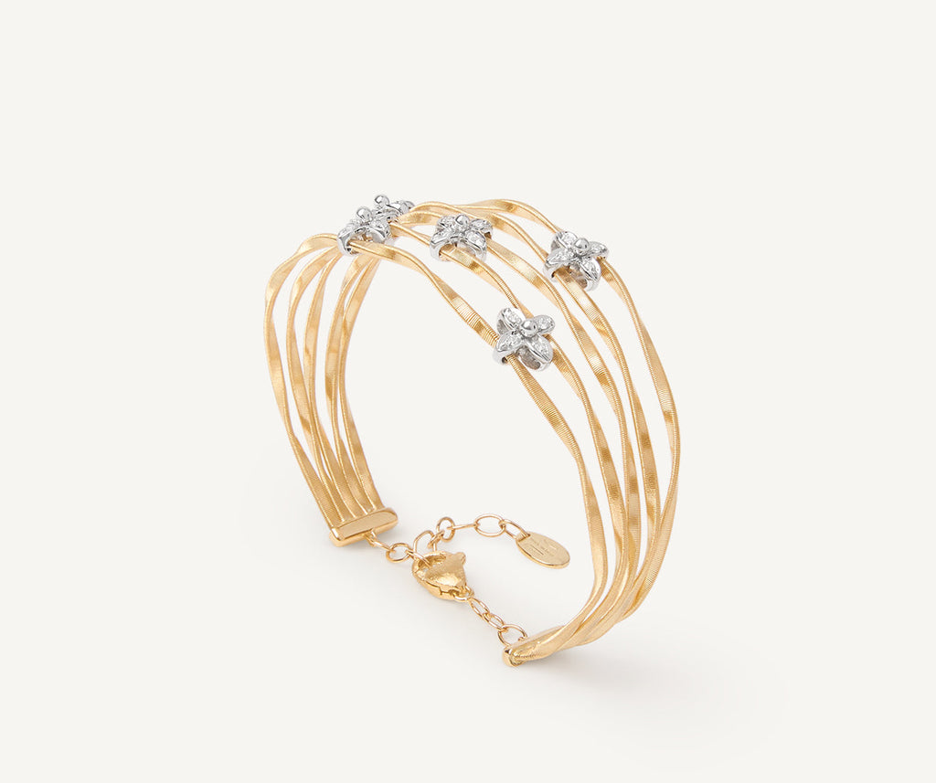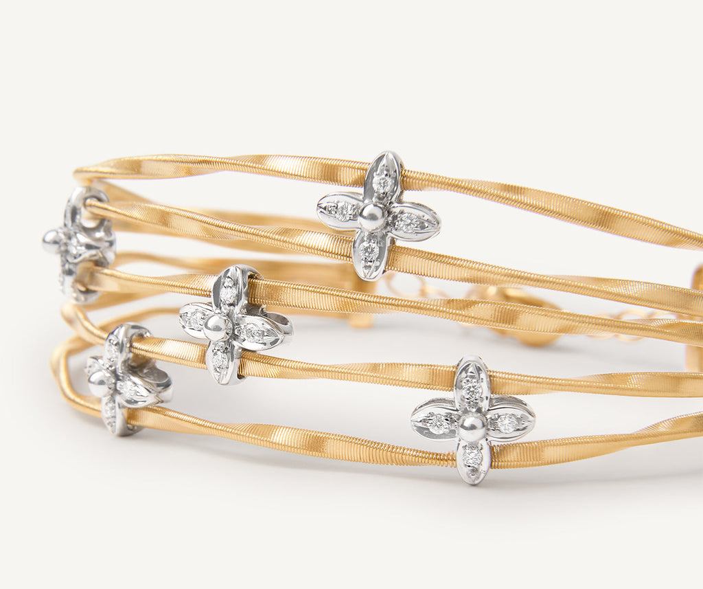 Mehrreihiger Armreif aus Gold mit floralen Diamantpavés