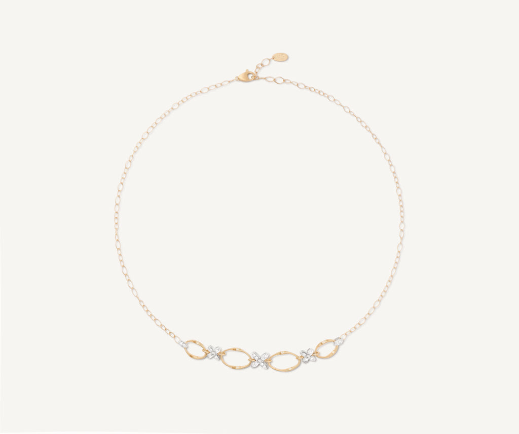 Diese minimalistische und raffinierte Halskette aus 18 Karat Gelbgold ist mit Details aus Diamantpavé in Brillantschliff besetzt. Die verstellbare Kette ist vielseitig tragbar und passt perfekt zu jedem Stil und Körpermaß!