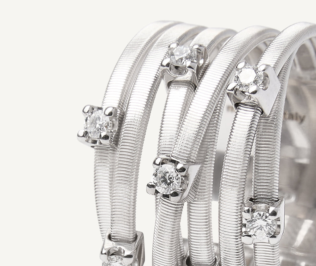 Siebenreihiger Ring aus Weißgold mit gefassten Diamanten