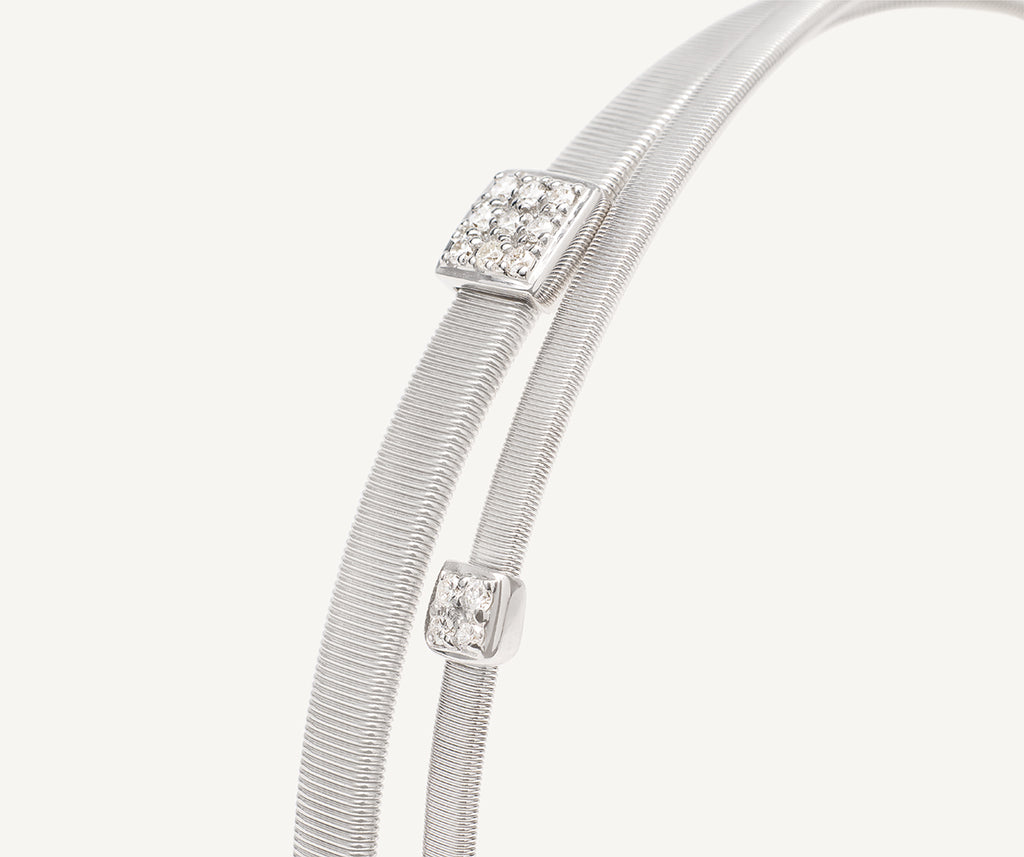 Pulsera en oro blanco con dos hileras y diamantes pavé