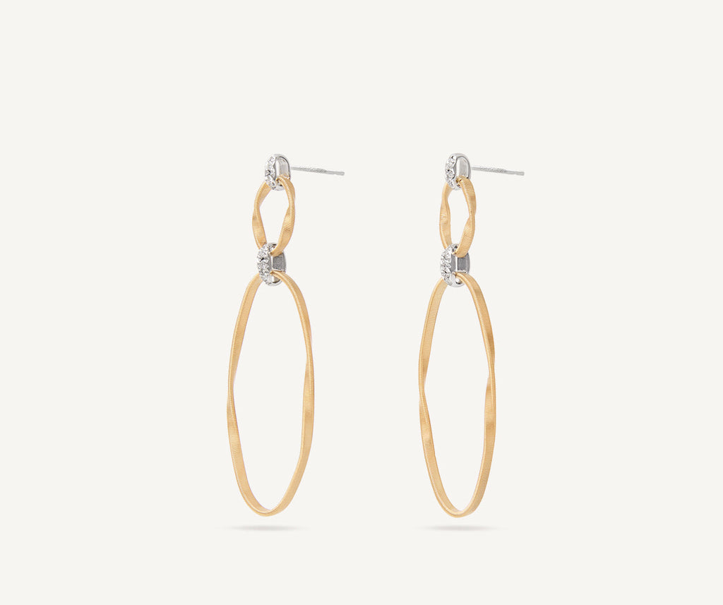 Deux éléments ovales en rangs de spirale torsadée, réalisée selon un savoir-faire exclusif appelé «coil», s’enlacent en donnant naissance à un design élégamment épuré. Cette boucle d’oreille en or jaune 18 carats est rehaussée d’un crochet pavé de diamants taille brillant.