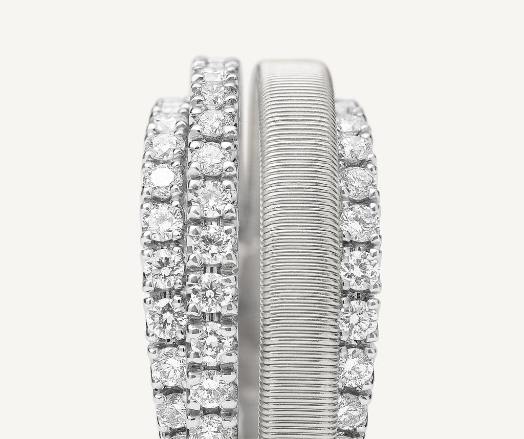 Anello a 4 fili in oro bianco 18kt con 3 fedine in pavé di diamanti